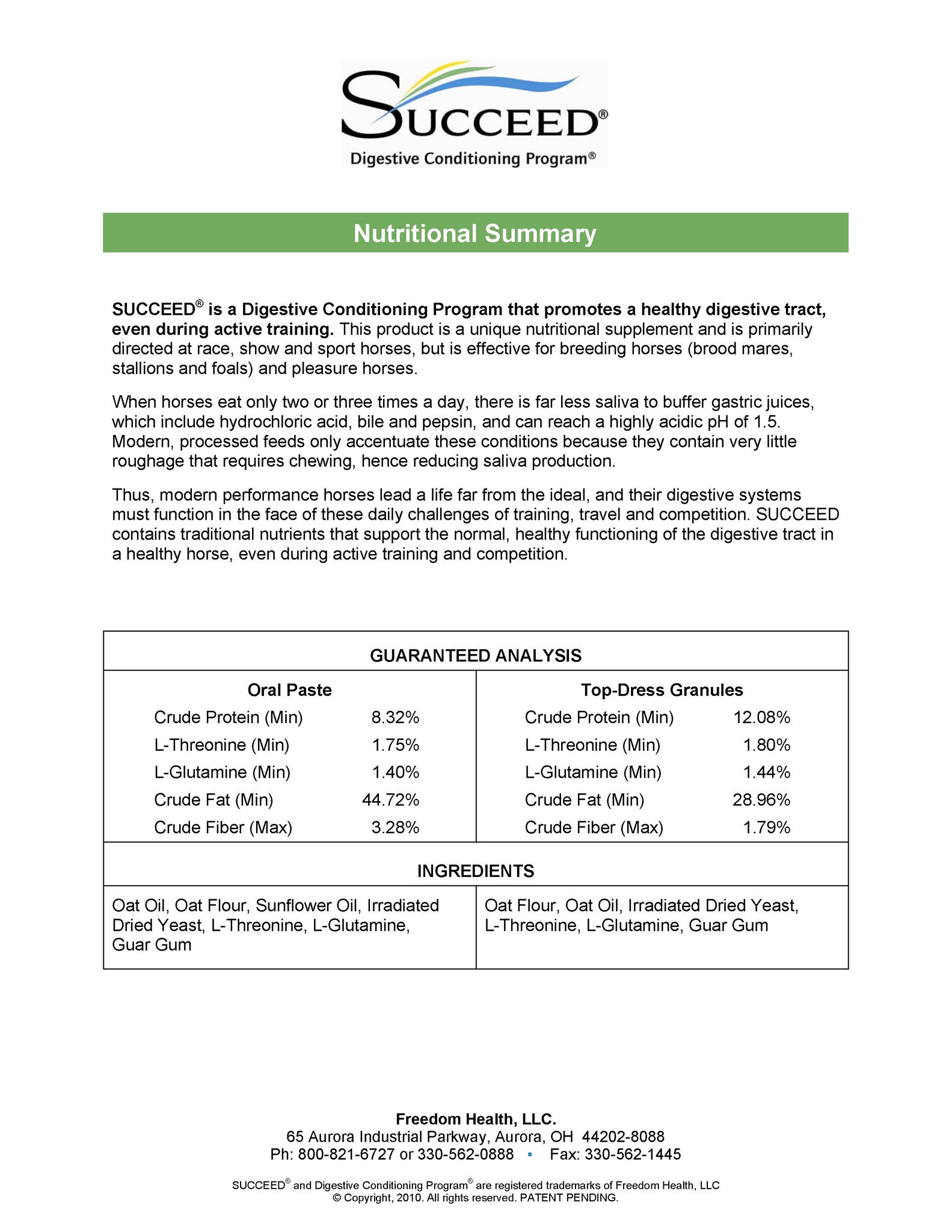 I’ve met the scientists at Freedom Health, and I know this product really works. I use it on my own performance horses. If you have performance horses, you need SUCCEED.